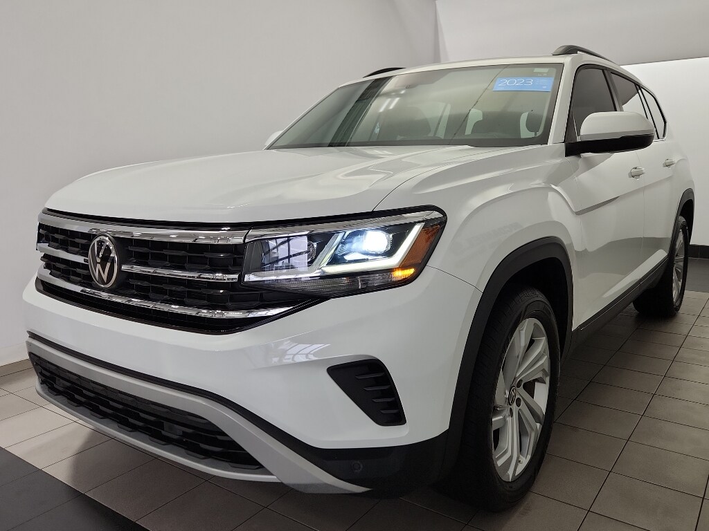 Carry lots of cargo while your passengers are comfortable. It has auto-adjust speed for safe following. This 2023 Volkswagen Atlas comes equipped with Android Auto for seamless smartphone integration on the road. It offers Apple CarPlay for seamless connectivity. This 1/2 ton suv offers Automatic Climate Control for personalized comfort. The high efficiency automatic transmission shifts smoothly and allows you to relax while driving. See what's behind you with the back up camera on this unit. Good News! This certified CARFAX 1-owner vehicle has only had one owner before you. Our dealership has already run the CARFAX report and it is clean. A clean CARFAX is a great asset for resale value in the future. This Volkswagen Atlas is a manufacturer certified pre-owned vehicle. Set the temperature exactly where you are most comfortable in this 2023 Volkswagen Atlas . The fan speed and temperature will automatically adjust to maintain your preferred zone climate. This 2023 Volkswagen Atlas features cruise control for long trips. Electronic Stability Control is one of many advanced safety features on this 1/2 ton suv. This model has a V6, 3.6L high output engine. The vehicle's Forward Collision Warning system alerts the driver to potential front-end collisions, enhancing safety. Front wheel drive on this 2023 Volkswagen Atlas gives you better traction and better fuel economy. Enjoy the tried and true gasoline engine in this unit. Bluetooth technology is built into this Volkswagen Atlas, keeping your hands on the steering wheel and your focus on the road. The leather seats in this 1/2 ton suv are a must for buyers looking for comfort, durability, and style. With the adjustable lumbar support in it your back will love you. Load groceries and much more with ease into it thanks to the power liftgate. The rear parking assist technology on this model will put you at ease when reversing. The system alerts you as you get closer to an obstruction. Never get into a cold vehicle again with the remote start feature on the Volkswagen Atlas. The Volkswagen Atlas embodies class and sophistication with its refined white exterior.