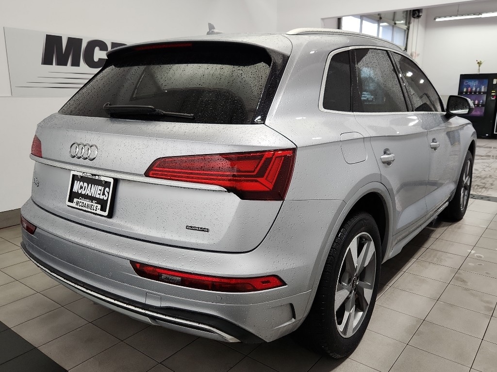 Anti-lock brakes will help you stop in an emergency. The Audi Q5 has automated speed control that adjusts to maintain a safe following distance, enhancing highway driving convenience. This Audi Q5 is equipped with all wheel drive. This mid-size suv offers Android Auto for seamless smartphone integration. Apple CarPlay: Seamless smartphone integration for this mid-size suv - stay connected and entertained on the go! The Audi Q5 keeps you comfortable with Auto Climate. The high efficiency automatic transmission shifts smoothly and allows you to relax while driving. See what's behind you with the back up camera on this vehicle. Good News! This certified CARFAX 1-owner vehicle has only had one owner before you. This Audi Q5 has a clean CARFAX vehicle history report. Set the temperature exactly where you are most comfortable in this unit. The fan speed and temperature will automatically adjust to maintain your preferred zone climate. Easily set your speed in this mid-size suv with a state of the art cruise control system. Increase or decrease velocity with the touch of a button. Electronic Stability Control is one of many advanced safety features on this vehicle. This model has a 4 Cyl, 2.0L high output engine. Know you and your passengers are protected with the front and rear side curtain airbags in the Audi Q5. It is equipped with front air bags. This mid-size suv is equipped with front side curtain airbags. This model is equipped with a gasoline engine. It features a hands-free Bluetooth phone system. Enjoy the heated seats in it you will never buy a vehicle without them. Everyone loves the comfort of having a warm seat on those cold winter days. Keep your hands warm all winter with a heated steering wheel in this mid-size suv . Quickly unlock this vehicle with keyless entry. The vehicle's Lane Departure Warning helps keep you in your lane. The leather seats in this mid-size suv are a must for buyers looking for comfort, durability, and style. Help alleviate lower back pain with the driver seat lumbar support in this vehicle. The spacious cabin accommodates your family and friends in comfort. Take it to the mountains or the beach. this vehicle can handle it all. Enjoy the convenience of the power liftgate on this mid-size suv. A front power adjustable seat increases driver comfort. The premium wheels make this vehicle stand out from the crowd. The state of the art park assist system will guide you easily into any spot. The Audi Q5 looks aggressive with a streamlined rear spoiler. Make room for more passengers, carry extra luggage or your favorite sports gear with the roof rack on this model. This model has satellite radio capabilities. The vehicle gleams with an elegant silver clear coated finish. This 2023 Audi Q5 comes with a sliding sunroof to let in sunshine and fresh air. The Audi Q5 has an adjustable telescoping wheel that allows you to achieve a perfect fit for your driving comfort. This vehicle comes standard with a state of the art traction control system. with XM/Sirus Satellite Radio you are no longer restricted by poor quality local radio stations while driving this model. Anywhere on the planet, you will have hundreds of digital stations to choose from.